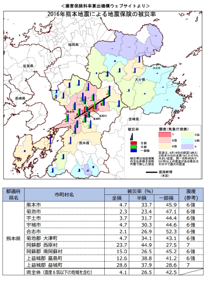 マグニチュード7クラスになると全損認定が一気に上がることがよくわかります。