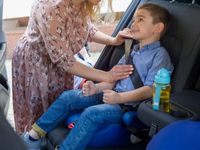 4歳以上10歳以下または身長4フィート9インチ(約145cm)未満のお子さまは、後部座席に取り付けられたハーネス付きのチャイルドシートまたはブースターの着用が必要です。